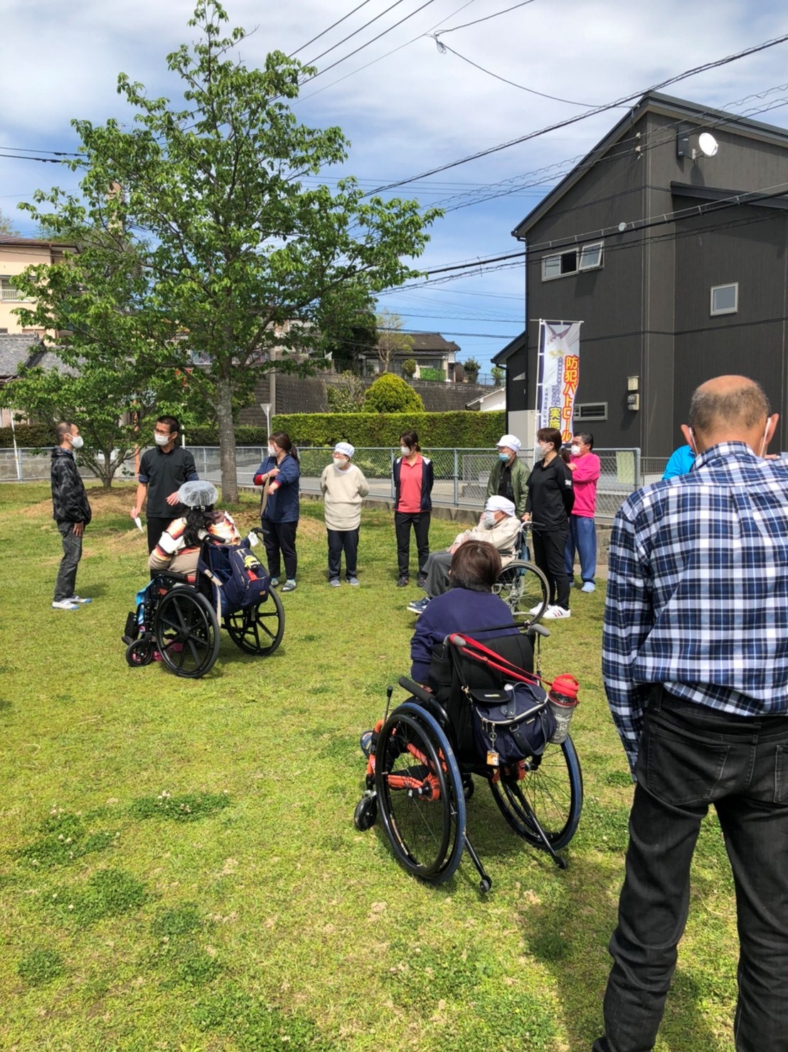 4月総合避難訓練 全体 2021.04.16 4月15日に総合避難訓練を行いました。 地震による出火、その後施設の裏山の土砂崩れを想定し、第一避難所であるちびっこ広場への避難訓練を行いました。 行う中で、誘導の仕方や点呼の時間など改善すべき点が多々でてきました。 今回の訓練を通し、改善点を職員間で話し合い次からの避難訓練に活かそうと思います。 いつか起こるであろう南海トラフ地震に備えて・・・。